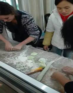 12月14日中午,英语教研室热闹非凡,英语教研室的老师们一边向外教介绍了中国民间传统美食——饺子的由来以及象征意义,一边向外教们展示了饺子的基本制作方法。两位外教怀着浓厚的兴趣,积极体验了和面—调馅——包馅——煮熟的整个过程。最后,外教品尝了自己亲手制作的香喷喷、热腾腾的水饺,喜悦之情,溢于言表。