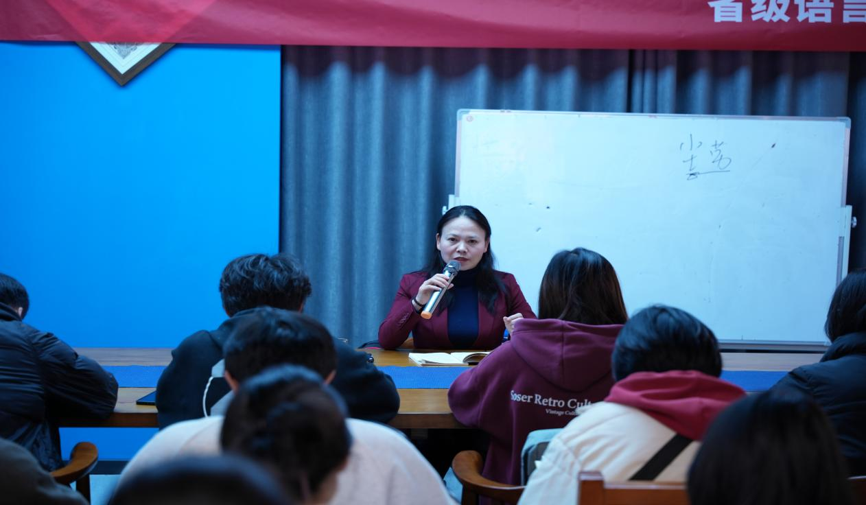 贺梦依在开场时讲道:“今天,我们一起在‘文化千岛’的艺术氛围中,暂别尘劳,翻开《大学》,向内沉潜,抵达思想的安定与澄明。”随后,她为大家亲切解读了“为人君,止于仁;为人臣,止于敬......与国人交,止于信”的“五止之道”,为现代人际关系和职场关系提供了清晰准则。她还结合生活实际,用“诚于中,形于外”的例子重点为大家阐释了“如琢如磨”“富润屋,德润身”“相由心生”等道理,启发同学们加强内心品德修养。最后,在“诚意”“正心”篇章中,贺梦依以“慎独”为线,串联起四位先贤的智慧:从郑玄的“闲居谨慎”,到朱熹的“慎其独知”,再到王阳明的“依良知而为”,终至曾国藩的“修身实践”。她指出,“慎独”是从外在行为约束到内心良知觉醒的修养进阶,我们每个人应该努力做到内外如一。